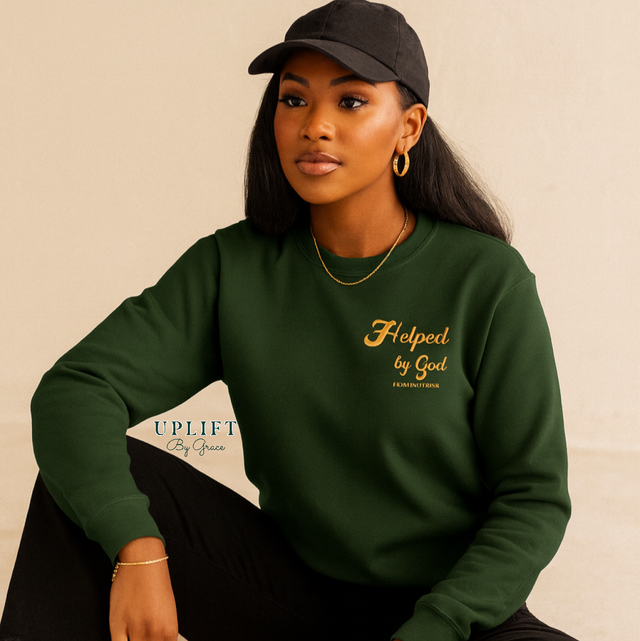 Helped by God Sweatshirt — Forest Green